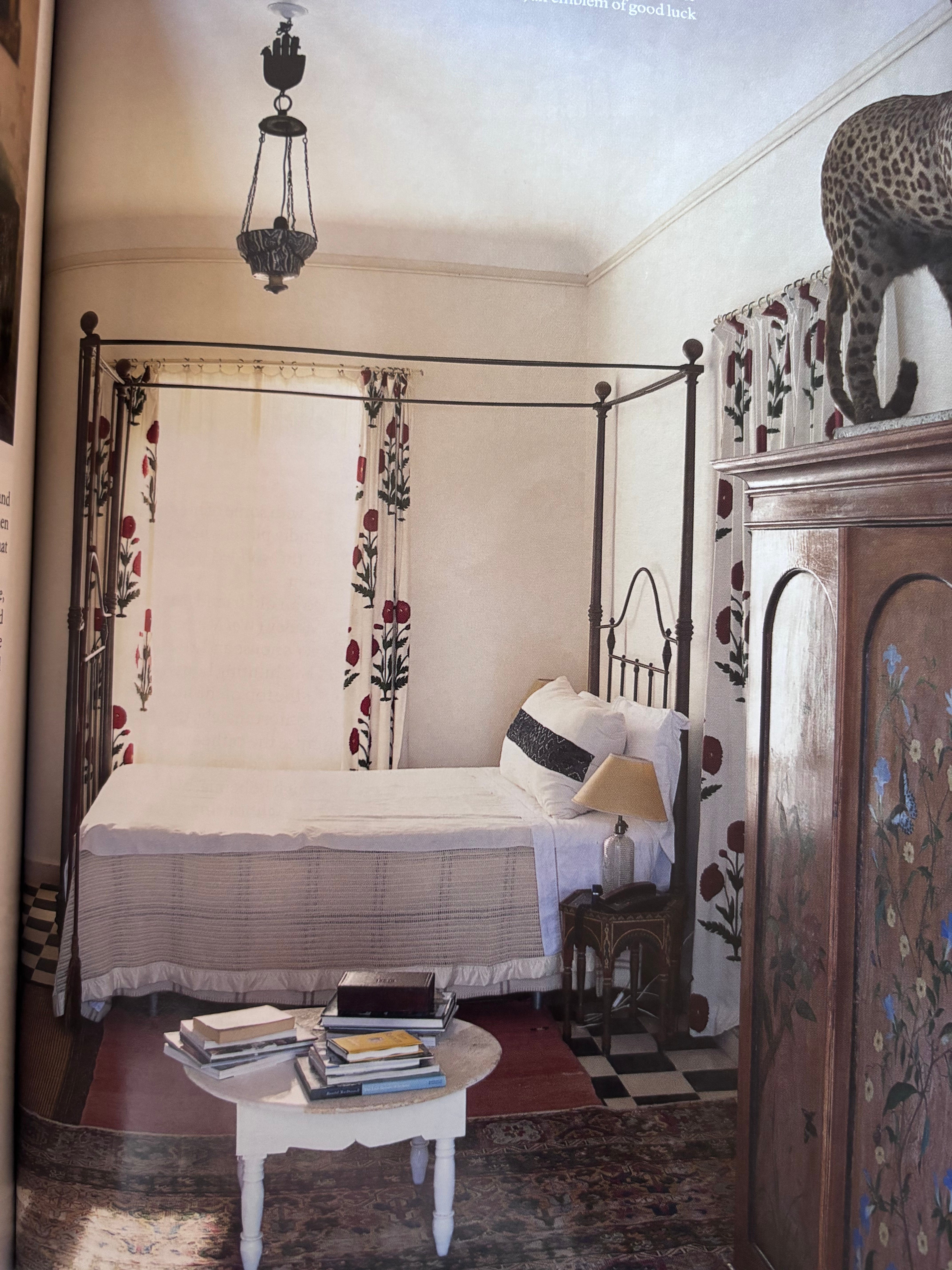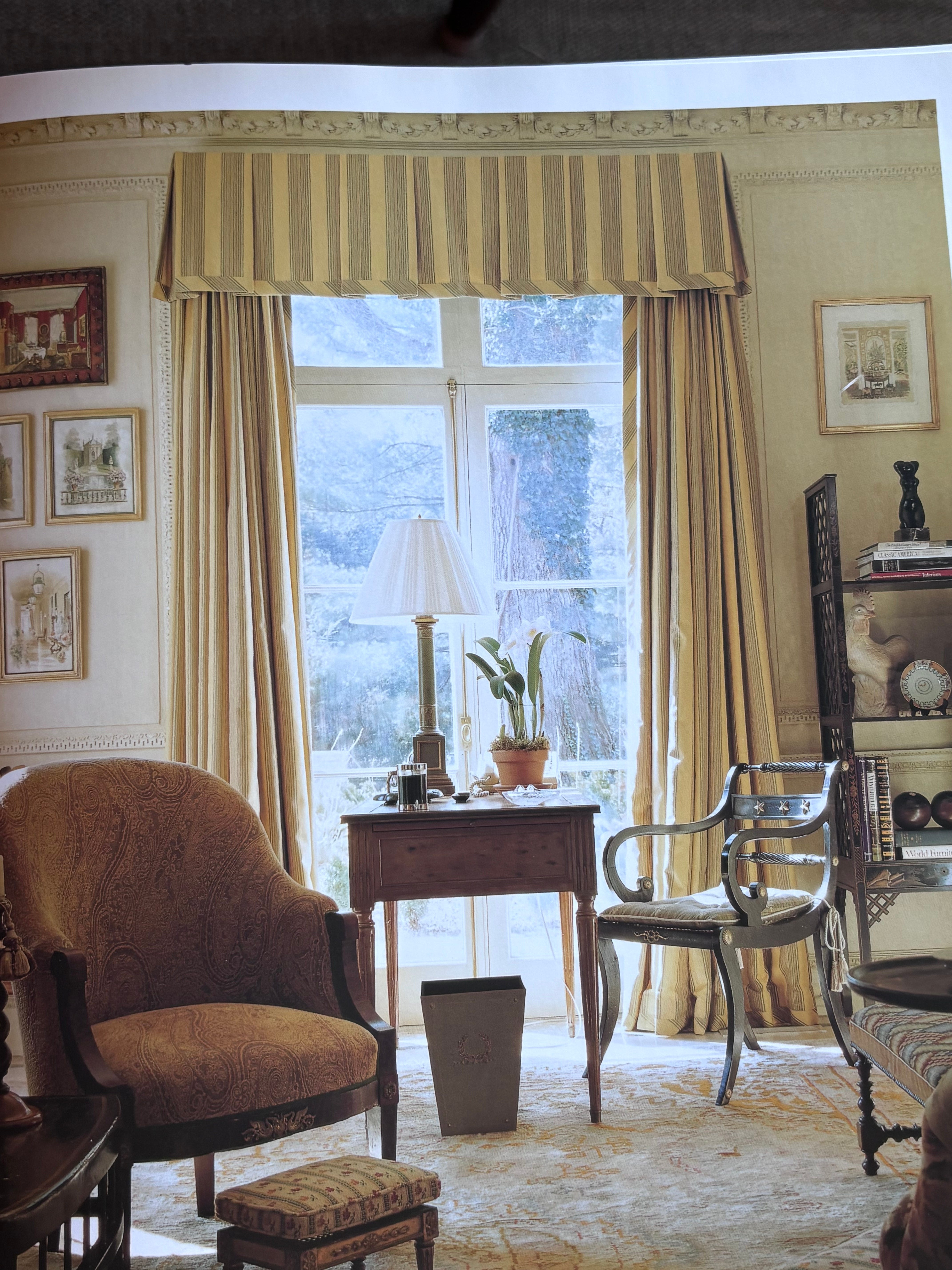 When it comes to WT (window treatments) I am decidedly trad at heart. I lived in a Colonial house built in 1771 growing up, and the curtains in the upstairs guest bedroom, which I do not have a photo of, but are prominent in my mind’s eye, were done in a large scale Chinoiserie print on cotton percale with a soft straight valance and were very subtly lined so the light shone through. This is my ideal, except I personally wouldn’t Chinoiserie in 2026. I prefer to appropriate from cowboy culture if I must (and am searching for a hint of cow print for something, somewhere…) For this application, however, I am currently obsessing over this Le Manach print. Le Manach is a French house under the Pierre Frey umbrella which was founded in the 19th century and isn’t not complicated by colonialist gaze (and more) upon Chinese and Indian cultures. This pattern is derivative of Indian palampore bed hanging textiles, but the ground cloth and printing technique are decidedly French. These uncomfortable mashups are aplenty in décor and that’s an essay for another time. As this Manach depicts only flowers I will allow it. Also, it’s drop.