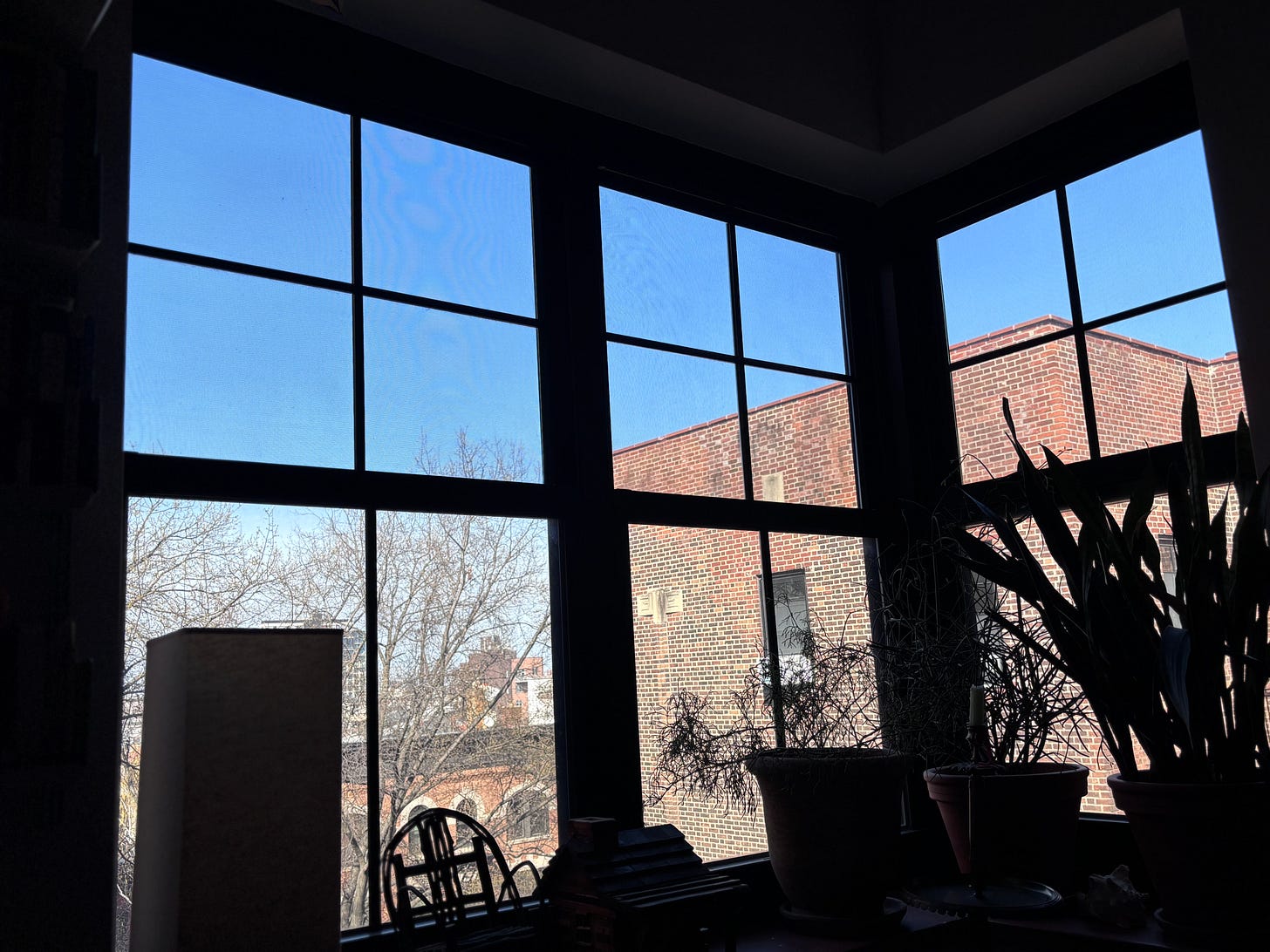 Textiles make the home. I’m biased because I went to college for Textiles, but they are my favorite interior element. They are the warmth, the color, the pattern, the texture. A window treatment is, for me, primarily a place to introduce a new textile and therefore should not be skipped. And yet, I have lived without curtains or shades of any kind in my Brooklyn studio for 4.5 years.
